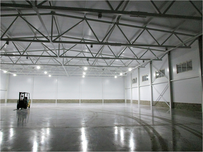 Для освещения производства базы были использованы светильники производства ЛЕДЕЛ L-LEGO мощностью 110 Вт, которые успешно заменяют традиционные светильники РСП-250 (лампа ДРЛ-250 Вт) и ГО 150 (лампа ДРИ 150 Вт).